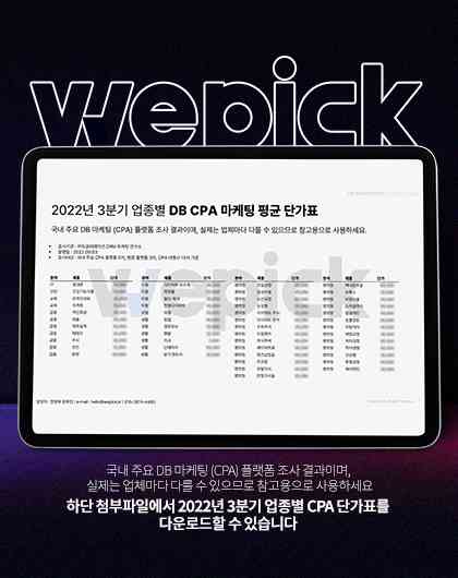 하단 버튼을 클릭하시면 2022년 3분기 업종별 CPA 단가표를 다운로드할 수 있습니다